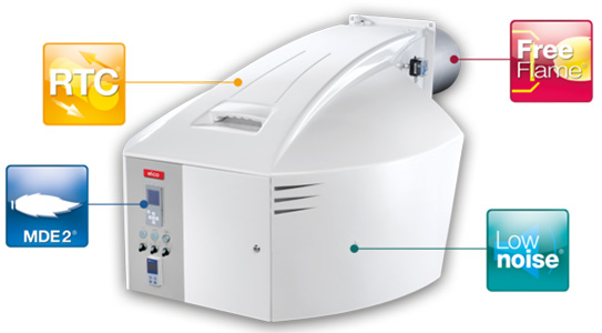 用于清油和雙燃料燃燒器,F(xiàn)ree Flame煙氣內(nèi)循環(huán)燃料快速氣化;當(dāng)燃油氣化,它被控制在燃燒頭外30厘米的位置開始穩(wěn)定燃燒。